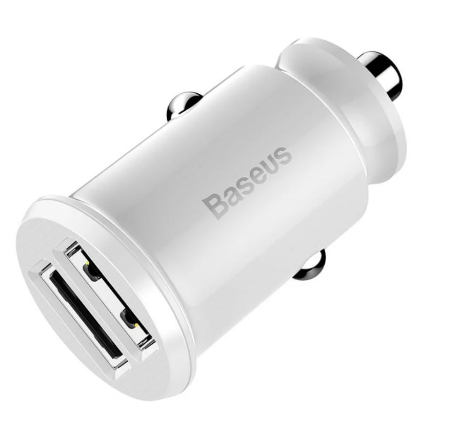 Incarcator auto Baseus Grain, 2xUSB-A, Quick Charge 2.0, 5V/3.1A Alb