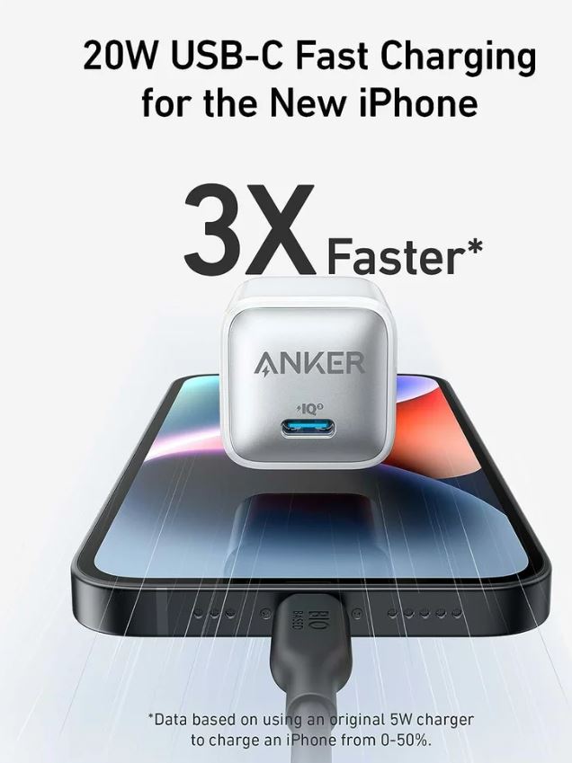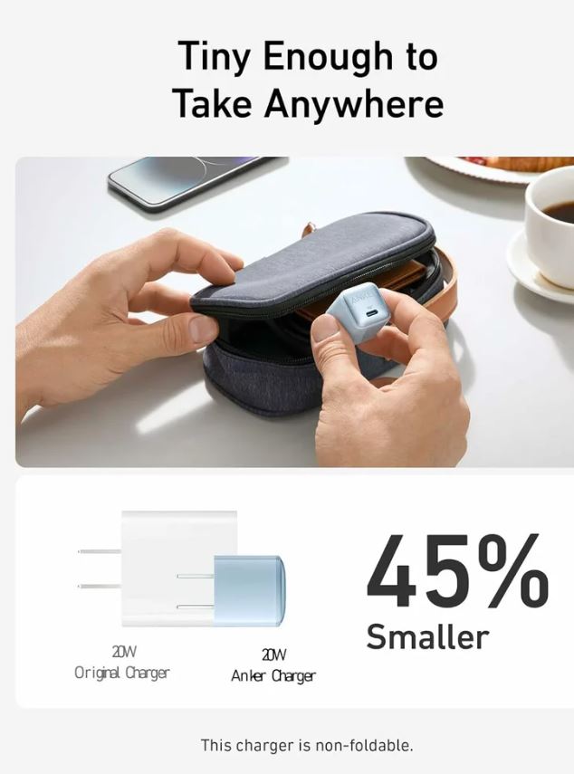 45% mai mic decat un incarcator original de 20W - dar la fel de puternic.