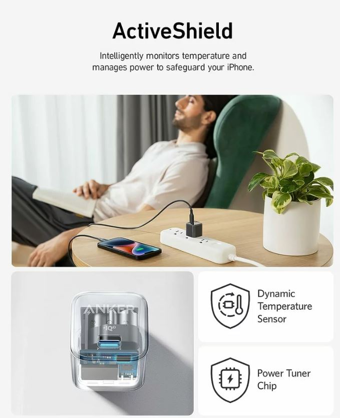 Echipat cu noul nostru sistem de siguranta ActiveShield pentru o protectie sporita. Dispune de un senzor dinamic de temperatura care monitorizeaza activ temperatura si de un cip Power Tuner care ajusteaza puterea de iesire pentru a proteja dispozitivul conectat.