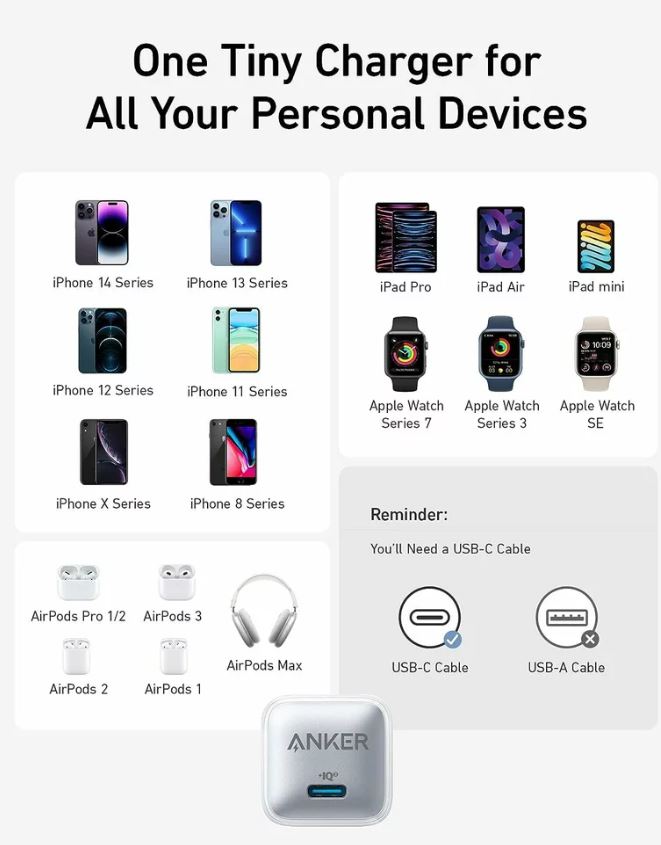iPhone 15 / 15 Pro / 15 Pro Max / 15 Plus / 14 / 14 Pro / 14 Pro / 14 Pro Max / 13 / 13 Mini / 13 Pro / 13 Pro / 13 Pro Max / 12 / 12 mini / 12 Pro / 12 Pro / 12 Pro Max / iPhone SE (a doua generatie) / 11 / 11 Pro / 11 Pro / 11 Pro Max / XS / XS Max / XR / X / X / 8 Plus / 8; iPad 10. 2-inch/; iPad mini 8,3-inch/; iPad Pro 12,9-inch generatia a 4-a / a 3-a / a 2-a / a 1-a; iPad Pro 11-inch generatia a 2-a / a 1-a; iPad Pro 10,5-inch; iPad Air generatia a 4-a / a 3-a; iPad generatia a 8-a / a 7-a; iPad mini generatia a 5-a, AirPods, Apple Watch si multe altele