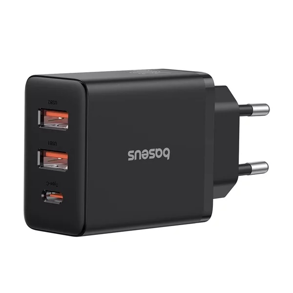 Incarcator retea Baseus Cube, 30W, 2x USB-A, 1x USB-C, Fast Charge Negru