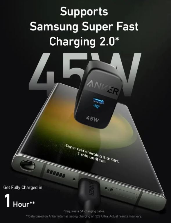 Cat timp ii ia incarcatorului Anker 313 Charger (Ace, 45W) sa incarce complet un Galaxy S23 Ultra?