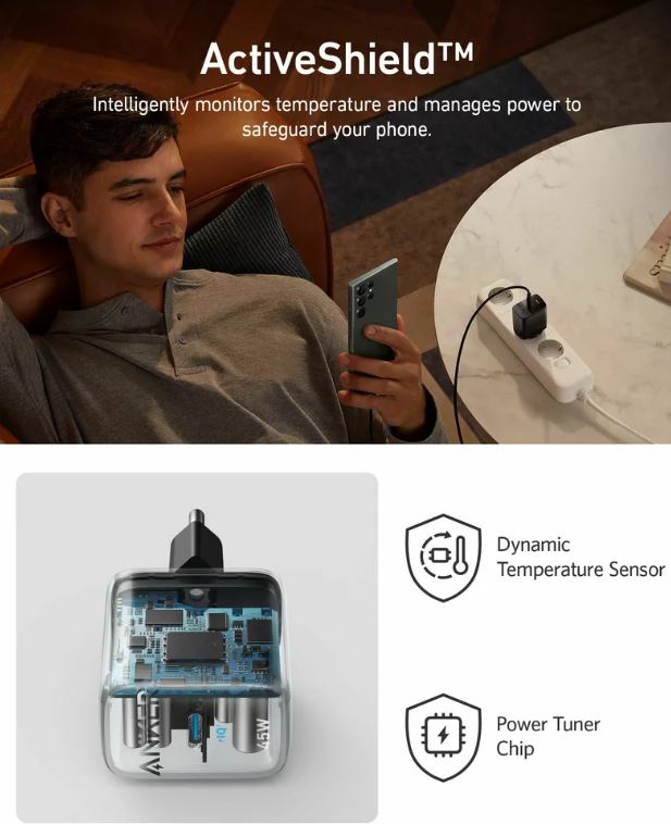Cu o eficienta energetica mai mare si o disipare imbunatatita a caldurii, nitrura de galiu (GaN) face ca incarcatoarele Anker sa fie mai mici si mai sigure, fara a sacrifica nici macar o picatura de putere.