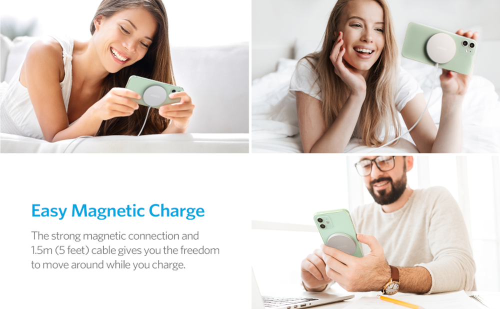 Anker PowerWave Select+ Magnetic Padse fixeaza magnetic in pozitie pentru a asigura o aliniere perfecta si o fixare puternica pentru o incarcare stabila si eficienta.