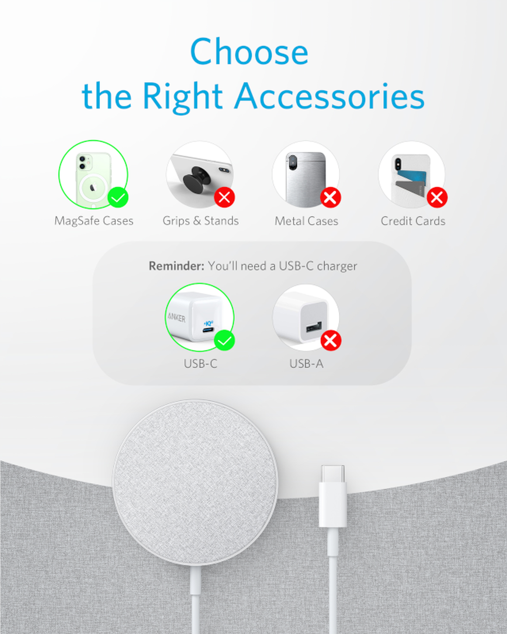 - Nu este compatibil cu carcasele pentru telefoane non-MagSafe, deoarece va cauza o conexiune magnetica mai slaba.