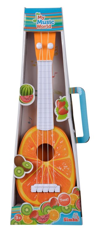 Instrument muzical Ukulele cu 4 corzi de nilon. Tematica designului lor este una haioasa, in forma de portocala. Instrumentul muzical are o lungime de 36cm.
