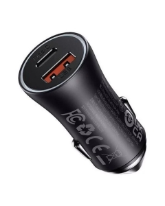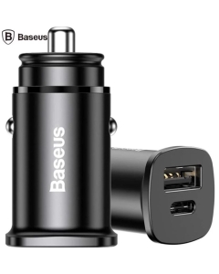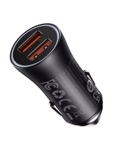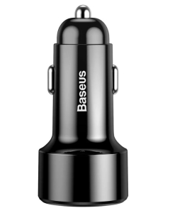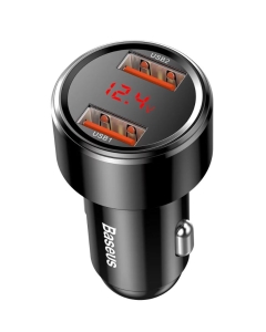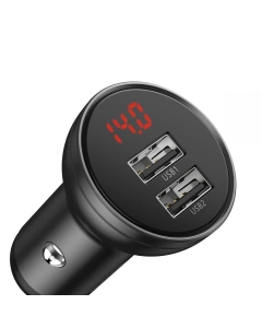 Incarcator auto Baseus Display, 2x USB, 4.8A, 24W, Gri