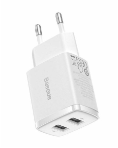 Incarcator retea Baseus Compact, 10.5W, 2x USB-A Alb
