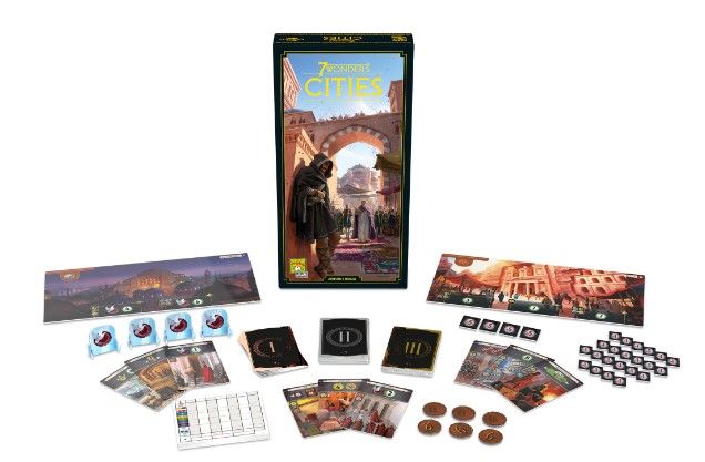Pe aleile ntunecate ale ora ului t u aurul e la putere se fac i desfac alian e secretele sunt tr date... Acum influen a ta se extinde n inima ora elor rivale. n plus fa de dou noi Minuni i op iunea de a juca n echip aceasta extensie v ofer un nou tip de c r i carti-orase. Mercenari ho i spioni i diploma i vor da un nou dinamism jocurilor tale. Cities este o extensie a jocului 7 Wonders. Ad ug o nou dimensiune i o multitudine de mecanici jocului de baz care vor face lucrurile i mai interesante Jocul vine cu dou minuni ale lumii cu efecte speciale i un nou set de reguli ce permite formarea de alian e datorii i o variant de joc pe echipe m rind posibilit ile de interac iune ntre juc tori. Vei reu i s construie ti cel mai puternic imperiu n ciuda mercenarilor ho ilor i diploma iilor Nou edi ie are o cutie nou cu foi a de aur aspect mbun t it pentru o mai bun imersiune n joc dou minuni noi concepute pentru extensie o bro ur care descrie noile efecte ale extensiei i include cardurile lansate ini ial sub numele de Cities Anniversary Pack. 7 Wonders Cities este o extensie independenta dar compatibil cu alte extensii ale jocului 7 Wonders. Poate fi jucat doar mpreun cu jocul de baz . Regulamentul jocului este n limba roman .Specificatii