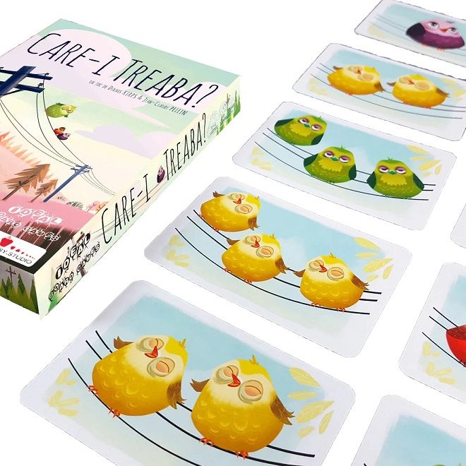 jucatori 2-4 minute 20 Limba Romana Cautati un joc care sa va incapa in portofel poate fi explicat in 60 de secunde poate fi jucat in 15 minute perfect pentru 2 3 sau 4 persoane sa aiba un grad ridicat de rejucabilitate se preteaza atat pentru copii cat si pentru pasionati Ei bine atunci opriti-va din cautat CARE-I TREABA este un joc distractiv si rapid in care trebuie sa formati seturi intorcand cartile in mod strategic care nu va mai parasi masa de joc Formati seturi cu erse pasari mai repede decat prietenii vostri amintiti-va ce carti si unde sunt asezate pe masa si fiti atenti la seturile celorlalti jucatori Dupa ce castigati... jucati din nou CARE-I TREABA Distractie Continut 30 carti de joc 1 RegulamentSpecificatii