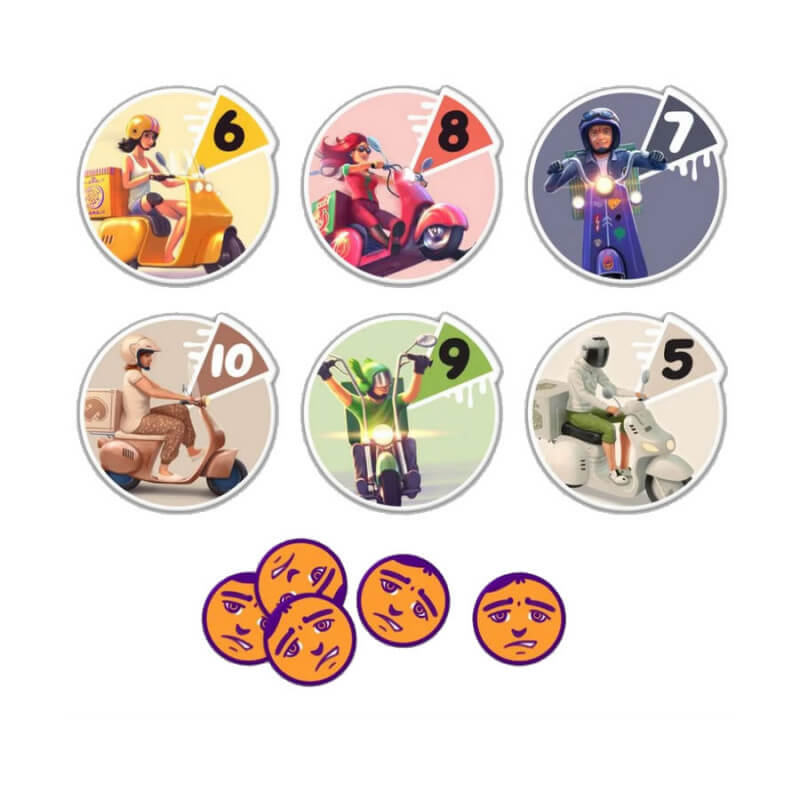 La pizzeria nou deschisa Angelo comenzile vin in valuri In calitate de curieri de pizza trebuie sa serviti cat mai multi clienti cu pizza lor preferata. Dar inainte de livrare trebuie sa adaugati topping-urile potrivite ciuperci porumb dulce masline rucola rosii si mozzarella care sunt desenate pe zarurile cu care veti juca. Atentie concurenta nu doarme Cine va fi agentul de livrare preferat al clientilor pizzeriei deci va servi cele mai multe si mai valoroase comenzi castiga In acest joc de strategie si sansa va trebui sa distribuiti topingurile aratate pe zaruri cat mai eficient astfel incat la fiecare runda sa poti livra cat mai multe multe si cat mai scumpe pizza astfel incat sa aduni cat mai multe puncte. Recomandat pentru jucatori de peste 7 ani. Numar de jucatori 1-4 Durata medie joc 25 minute. Jocul are regulament tradus in limba Romana. Interzis copiilor sub 3 ani Contine piese miciSpecificatii