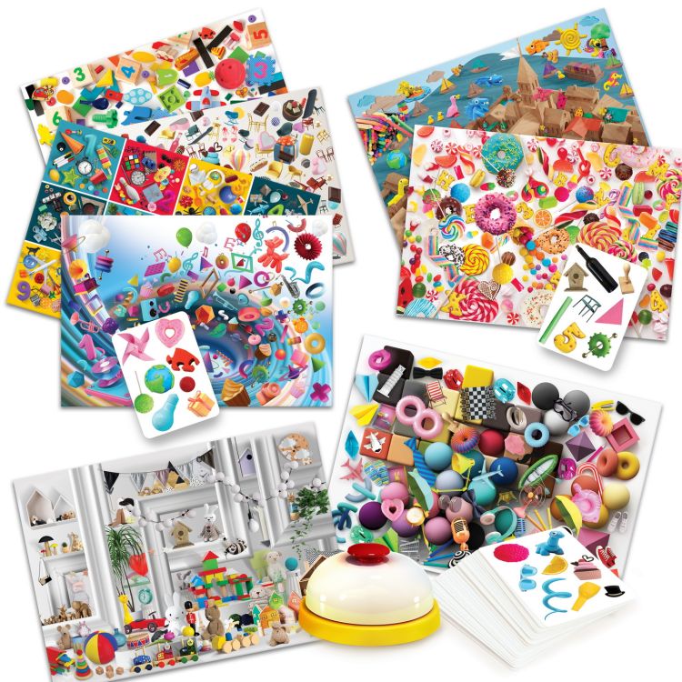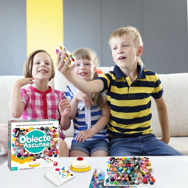 Cel mai distractiv si antrenant joc de obseratie! Alege o plansa de joc, trage o carte si gaseste rapid obiectul ascuns. Fii primul care suna din clopotel si castiga! Jocul contine 4 planse de joc, 30 de cartonase cu obiecte, 1 clopotel si 1 manual de instructiuni. Valori dezvoltate: perceptia vizuala, coordonarea mana-ochi, abilitati sociale. Jucatori 2-4. Varsta 6+. Nu necesita baterii.