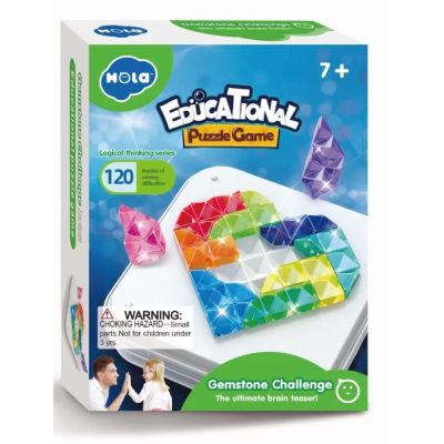 Cu zece pietre pretioase colorate si 120 de puzzle-uri cu diferite niveluri de dificultate acest joc ii va distra pe toti membrii familiei tale. In plus este chiar ideal pentru joaca parinte-copil Tot ce trebuie sa faceti este sa alegeti o carte de provocare si aranjati pietrele pretioase potrivite pe inima sau pe tabla cu diamante apoi utilizati piesele ramase pentru a umple toate golurile. Deci da-i drumul lasa-l pe micutul tau sa-si arate abilitatile cu aceasta provocare interesanta cu pietre pretioase.Specificatii