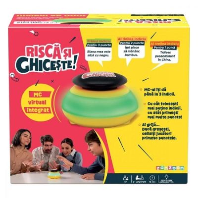 Provoaca-ti familia si prietenii la un joc palpitant Caracteristici - Fii primul care apasa pe buton si da raspunsul corect Daca nu stii raspunsul corect din prima incercare ai pana la 3 indicii date de MC-ul virtual integrat care sa te ajute sa iti dai seama. Dar atentie indiciile te vor taxa la puncte Vei primi cu atat mai putine puncte cu cat de multe indicii ceri. Bucura-te de competitie risca si distreaza-te alaturi de cei dragi - Pachetul contine buton fisa de punctaje manual de instructiuni. - Produsul functioneaza cu 3 baterii AAA R03 nu sunt incluse . Bateriile trebuie sa fie instalate si inlocuite numai de catre adulti. Bateriile se introduc in spatiul destinat in pozitia corecta respectandu-se polaritatea. Compartimentul bateriilor trebuie sa fie curat. Bateriile epuizate se schimba si se recicleaza conform normelor in vigoare. In cazul neutilizarii jucariei pentru mai mult timp se scot bateriile pana in momentul refolosirii. - Numar de jucatori 2 - Durata de joc 15 minute. - Nivel de dificultate autoadaptativa. - Jucaria dezvolta coeficientul de inteligenta creativitate imaginatie recunoastere coordonare mana-ochi. - Jucaria este realizata din plastic de calitate non-toxic. - Produsul este ambalat in cutie din carton Dimensiune buton 10. 5x10. 5x7. 5 cm Avertizare Produsul este nou si comercializat in ambalajul original al producatorului. Imaginile de pe acest site au caracter informativ. Ambalajul trebuie indepartat recuperat si aruncat de catre un adult inainte de a se da spre utilizare copilului. Nu lasati ambalajele produselor la indemana copiilor. Se recomanda utilizarea produsului sub supravegherea unui adult. Produsul poate contine piese mici care se pot inghiti sau inhala de cei mici existand pericolul de sufocare sau nu este potrivita copiilor mai mici de 3 ani. Pastrati instructiunile si etichetele pentru referinte viitoare. Pastrati produsul departe de foc si nu il lasati in preajma temperaturilor ridicate. Datorita masurarii manuale a produsului poate exista o diferenta minora fata de dimensiunea reala a produsului.Specificatii