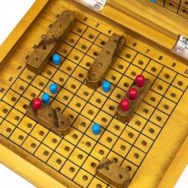 Toti membrii familiei copiii parintii chiar si bunicii se vor bucura de farmecul jocurilor clasice incluse in seria Wooden Games Workshop Sea Battle - Batalia pe mare 2 jucatori durata 10-20 min. varsta 6 ani Clasicul joc al bataliilor cu nave. Distruge nevele oponentului inainte ca el sa iti scufunde toata flota. Misiune localizeaza si distruge toate cele 5 nave ale jucatorului advers. Pregatirea jocului Fiecare jucator primeste o tabla de joc si o flota compusa din 5 nave toate avand aceeasi culoare o nava cu 2 segmente doua nave cu 3 segmente o nava compusa din 4 segmente o nava cu 5 segmente. Cei 2 jucatori se aseaza fata in fata cu tablele de joc deschise si orientate spre ei. Ei isi vor pozitiona strategic flota pe partea orizontala a tablei de joc. Jumatatea verticala este pentru a contoriza atacurile lansate. Cum se joaca Dupa ce si-au pozitionat navele pe tabla de joc cei doi jucatori trebuie sa incerce sa localizeze si sa bombardeze flota inamica strigand coordonatele de pe tabla de joc exemplu A1 J10 etc Navele au de la 2 la 5 segmente si fiecare segment corespunde unei coordonate de pe tabla de joc. Nava se considera a fi scufundata atunci cand toate segmentele au fost lovite bombardate. Jucatorul 1 ii va comunica celuilalt jucator coordonatele atacului de exemplu B-1 iar oponentul va raspunde Lovit daca atacul i-a lovit un segment de nava Ratat daca atacul NU i-a lovit flota. Daca o nava este scufundata jucatorul trebuie sa anunte Lovit si scufundat Coornodatele strigate se vor marca pe tabla de joc - piesele rosii se folosesc pentru a marca atacurile care au atins tinta loviturile bune. - piesele albastre se folosesc pentru a marca loviturile ratate. Castiga jucatorul care reuseste primul sa identifice si sa scufunde toate navele oponentului.Specificatii