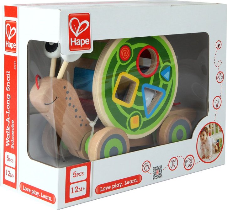 Acest melc multi-tasking transporta o cochilie plina de blocuri de lemn in timp. Descarcati incarcatura indepartand sortatorul colorat de forme si el este gata sa se rostogoleasca singur. Denumiti toate culorile de pe melc si de pe cochilie. Potriveste formele colorate cu lamelele colorate de pe cochilie. Instalati blocuri si trageti melcul prin labirint". Folositi cuvinte precum impingeti" si trageti" pentru a descrie actiunile copilului dvs.
