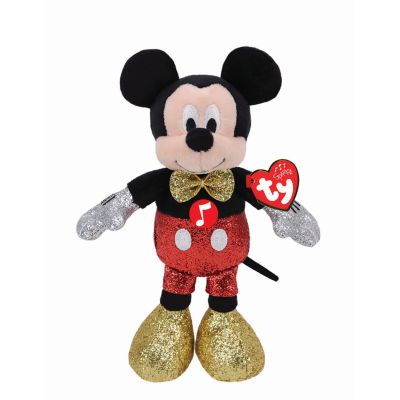 Jucarie plus Beanie Babies Disney Mickey cu sclipici si sunete Ty 20 cm