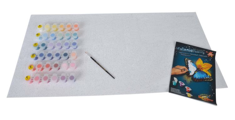 Acest set de pictura pe numere are o dimensiune 40x80 cm si este din carton cu textura din panza, cu desen conturat in numere. Culorile si pensula sunt incluse. Culorile acrilice des utilizate in realizarea picturilor artistice ce nu necesita amestecare cu apa, culorile se gasesc in tuburi de plastic ce au atasate numere corespunzatoare conturului desenat pe panza, tabloul se poate agata ulterior pe perete. Fiecare zona este marcata cu numere ce corespund unei anumite culori. Completati fiecare zona si in cele din urma imaginea va aparea ca un tablou finit. "Picturi pe Numere" este primul pas perfect pentru incepatori, pentru ca si acestia sa se bucure de pictura. Pictura odata terminata se poate pune in rama. Ramele nu sunt incluse in set. Ele sunt optionale si se pot achizitiona separat. Produsul este comercializat sub brandul german Schipper fiind fabricat la inalte standarde de calitate, in Germania.