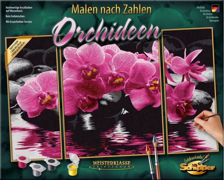 Kit pictura pe numere orhidee, 3 tablouri, Schipper