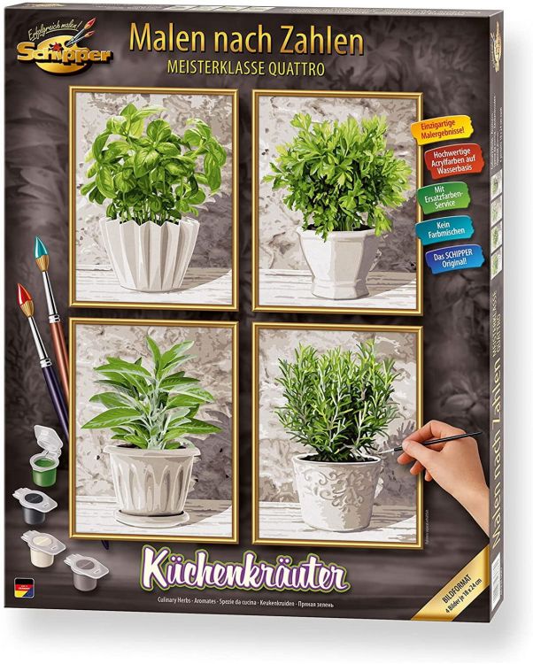 Kit pictura Schipper pe numere, Ierburi culinare, 4 tablouri, Schipper