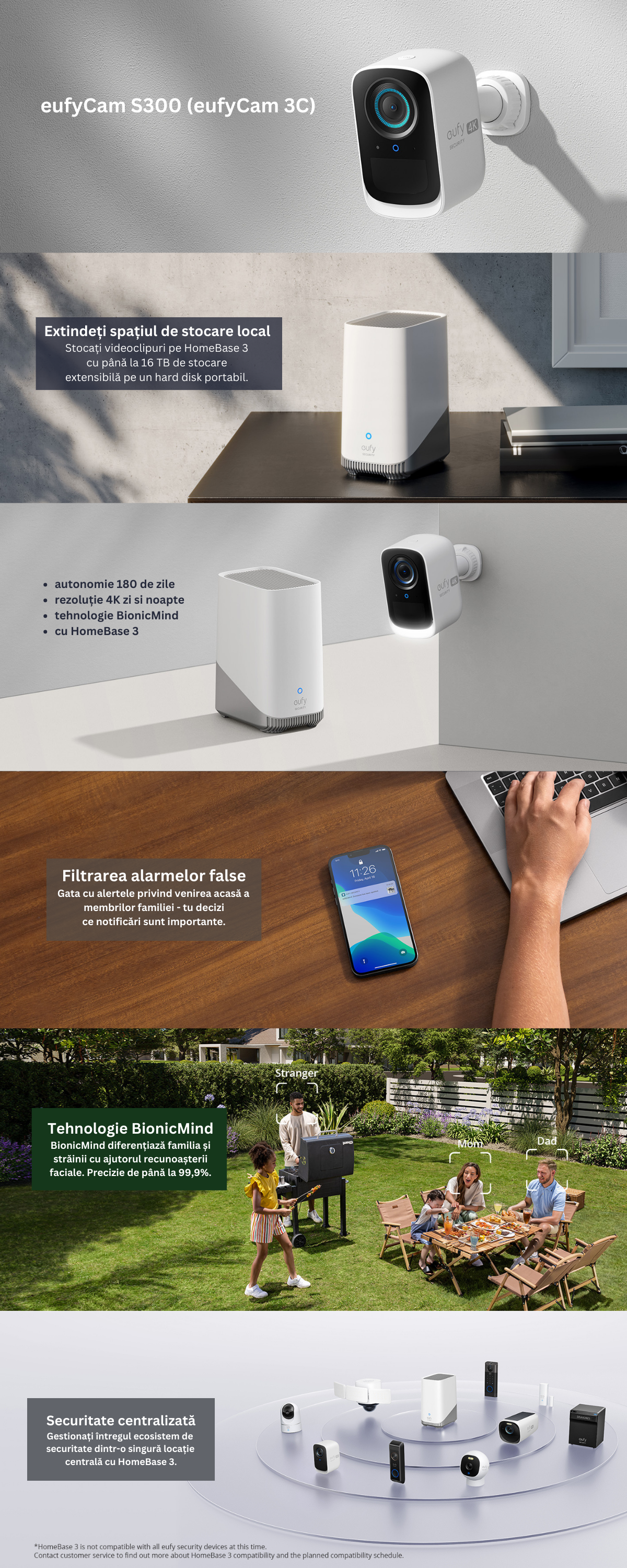 Kit supraveghere video eufyCam 3C S300, 4K Ultra HD, BionicMind, Nightvision, Homebase 3 + 3 camere video eufyCam 3C