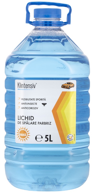 Lichidul de vara pentru parbriz, din gama Klintensiv, special conceput pentru a oferi o curatare eficienta parbrizelor si farurilor. Acest produs este antistatic si anticoroziv, fiind destinat pentru uz profesional. Formula sa pe baza de apa, cu proprietati detergente adecvata spalarii geamurilor si farurilor autovehiculelor, indeparteaza pana si cele mai mici urme recente sau vechi de pe parbriz, lasandu-l fara pete sau urme de murdarie. Aceasta functioneaza printr-o dubla actiune: curata cu spumare fina si densa datorita celor doua tipuri de surfactanti folositi, protejand, totodata, lamelele stergatoarelor, elementele de cauciuc si metal, vopseaua fara a depune calcar in diuze. Lichidul beneficiaza de o formula blanda, care nu corodeaza instalatia si are proprietati anti-statice. In urma folosirii acestui produs vei observa instant o aderenta mai scazuta a murdariei/urmelor de insecte/picaturilor de ploaie pe geamurile autovehiculului. Produsul reduce scartaitul si trecerea sacadata a stergatoarelor pe parbriz si este potrivit pentru utilizare la temperaturi mai mari de 5 grade Celsius. Mod de ambalare: bodon plastic cu palnie: 5000 ml. Valabilitate: 3 ani de la data producerii – inscrisa pe ambalaj MOD DE UTILIZARE : Solutia se introduce direct in rezervorul destinat lichidului de parbriz. Pentru o eficienta sporita, reduceti viteza autovehiculului si stropiti parbrizul timp de 5-7 secunde in timp ce actionati stergatoarele.