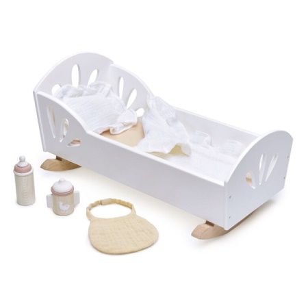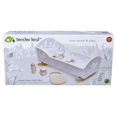 Leagan Lebada din lemn premium - Sweet Swan Dolly Bed- Leganati-va papusa pentru a adormi in acest patut minunat. Vopsit in alb cu elemente decupate si balansoare din lemn natural acest patut este potrivit pentru papusi sau ursuleti de plus. Vine complet cu o saltea de culoare roseata cuvertura de muselina si cu perna finisate cu un volan de lux. Pentru a prelungi timpul de joaca am inclus un biberon din lemn o cana pentru bebelusi si o baveta de muselina. Promovarea distractiei sanatoase si pozitive - Situatiile din viata reala ii inspira pe copii sa gandeasca creativ in timpul copilariei si ii determina sa interactioneze mai usor cu ceilalti in acelasi timp construind incredere si prietenie. De asemenea le consolideaza limbajul emotiile si abilitatile motrice fine. O metoda buna de dezvoltare a procesului de gandire - Copiii vor invata sa gandeasca pas cu pas si sa cultive bune obiceiuri organizationale in timp ce indeplinesc sarcini. Incurajeaza interactiunea cu parintii si fratii pentru a rezolva problemele si a-si indeplini obiectivele. Recomandat copiilor cu varsta de peste 18 luni. Jocurile premium creeaza un mediu de joc natural - Tender Leaf Toys foloseste cunostintele si creativitatea pentru a aduce energie si emotie jucariilor realizate din lemn premium. Din dorinta de a proteja pamantul folosesc doar lemn ecologic. Realizat dintr-o resursa regenerabila - Va doriti ce-i mai bun pentru copilul dumneavoastra si aceasta jucarie chiar acest lucru livreaza. Fabricat din lemn de arbore din cauciuc regenerabil aceasta este o jucarie ecologica si sigura care nu contine substante chimice iar pentru fiecare copac care devine o jucarie frumoasa un altul este replantat. Vopseaua folosita este pe baza de apa non-toxica pentru a pastra copiii in siguranta. Indeplineste toate standardele de siguranta si calitate europene - Calitatea si siguranta sunt cele mai importante parti ale proiectelor de la Tender Leaf Toys. Fiecare jucarie este facuta cu grija pentru bunastarea si educatia copiilor. Proiectat de echipa TLT din Marea Britanie pentru a satisface toate standardele europene. Fabricat in fabrica TLT din Indonezia. Despre Tender Leaf Toys creeaza jucarii netede frumos proiectate care promoveaza invatarea prin joc. Traditionali in conceptie dar contemporani in design toate produsele sunt realizate cu un accent distinct pe mestesug si calitate.Specificatii