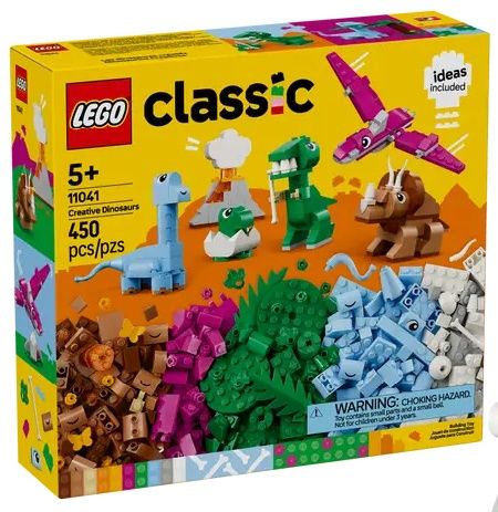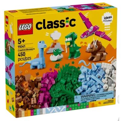 LEGO® Classic Dinozauri creativi (11041) este o jucarie cu dinozauri pentru copii, cu figurine din caramizi in culorile albastru, verde, violet si maro. Acest set de constructie mereu adaptabil este o jucarie excelenta pentru dezvoltarea abilitatilor creative de constructie la copiii de 5 ani si mai mari pasionati de dinozauri.