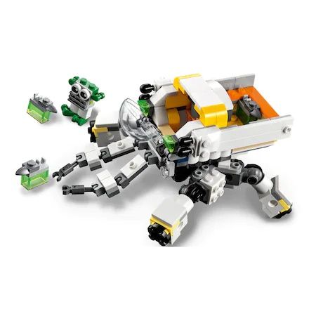 Fanii spatiului si ai robotilor se pot bucura de 3 experiente diferite de constructie si joaca cu acest set LEGO Creator 3 in 1. Ei pot crea Mecanismul de minerit spatial, care vine cu o figurina extraterestru si un set de cristale, si apoi il pot reconstrui intr-un transportor de marfa pozitionabil cu 4 picioare cu un pilot robot, sau pot crea un robot LEGO pozitionabil cu 2 picioare.