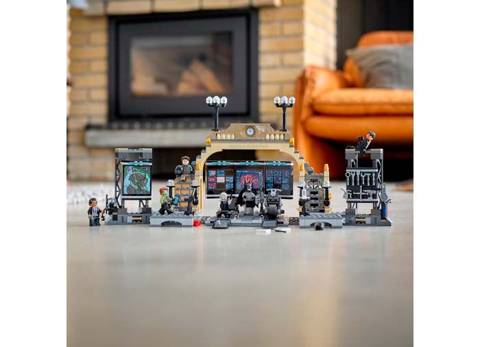 Batcave este echipat cu calculatoare, unelte si echipamente de sudura pentru reparatiile vehiculelor. Cei 2 pereti laterali, unul cu o harta mare GOTHAM CITY si celalalt cu un suport pentru unelte, sunt rabatabili, putand fi rotiti in diferite pozitii pentru mai mult spatiu de joaca. Setul include 6 minifigurine din filmul The Batman: Batman, Selina Kyle, Riddler, Vagabond, Alfred si Comisarul Gordon. Cele 3 elemente cu mesaje codificate de la Riddler pot fi citite numai cand copiii folosesc lupa speciala pentru a dezvalui indiciile. Cand Batman se aventureaza pe motocicleta sa, el se poate deghiza in alter ego-ul sau, Vagabondul. Iar daca se intoarce cu vreun raufacator, Batcave are chiar propria sa inchisoare. Setul de joc permite, de asemenea, ca Batmobile din Batmobile: Urmarirea lui Penguin (76181, neinclus) sa fie condus pe rampe, gata de reparatii.