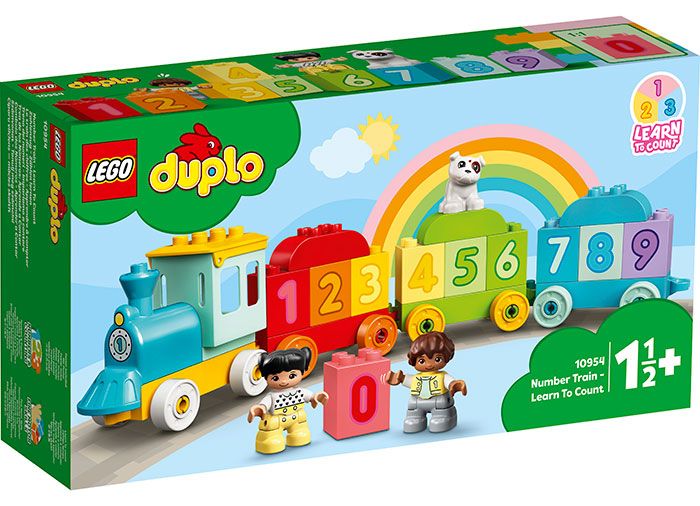 Prinde noul si coloratul LEGO DUPLO (10954) Primul meu Tren cu numere - Invata sa numeri. Cu 10 caramizi numerice pe care copilasii le pot incarca, descarca, stivui si sorta, plus figurine DUPLO fetita, baiat si caine, distractia jocului si a invatarii nu se termina niciodata.