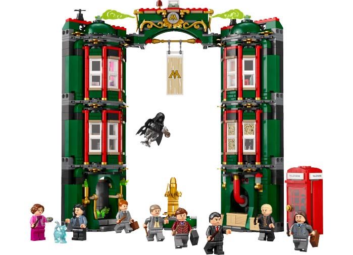 Acest set cu mai multe etaje surprinde marimea si importanta activitatilor Ministerului Magiei. Personaje familiare includ Harry Potter, Hermione Granger si Ron Weasley, care, cu o simpla rotire a capului si o piesa diferita de par se transforma in Albert Runcorn, Mafalda Hopkirk si Reg Cattermole. In spatele fatadei vei gasi numeroase zone interioare bogat detaliate: biroul lui Dolores Umbridge, biroul lui Arthur Weasley, Sala Profetiei si Sala de Tribunal. Copiii trebuie sa gaseasca medalionul Slytherin si sa scape fara a fi prinsi de catre Yaxley, Pius si Dementor!