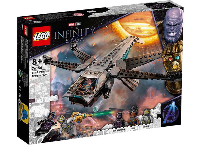 Micii super-eroi pot recrea actiunea de lupta la inaltime din Razbunatorii: Sfarsitul jocului a Studiourilor Marvel cu LEGO Marvel (76186) Nava libelula a Panterei negre - una dintre cele mai emblematice aeronave din filmele Marvel.