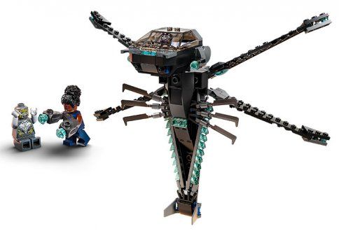 Aceasta recreere autentica a legendarei aeronave a Panterei negre este un set remarcabil, conceput pentru a oferi copiilor cele mai grozave constructii si exponate. Nava fantezista din Wakanda include 4 aripi reglabile - care se misca inainte, inapoi, in sus si in jos - 2 lansatoare de piroane si o carlinga cu deschidere in care se poate aseza o minifigurina la comenzi. Setul vine cu 3 minifigurine pentru a inspira joaca imaginativa: Pantera neagra, Shuri, sora lui, si un malefic razboinic Chitauri inarmat cu un explozor de putere.