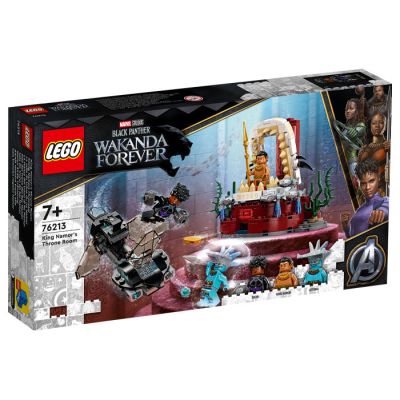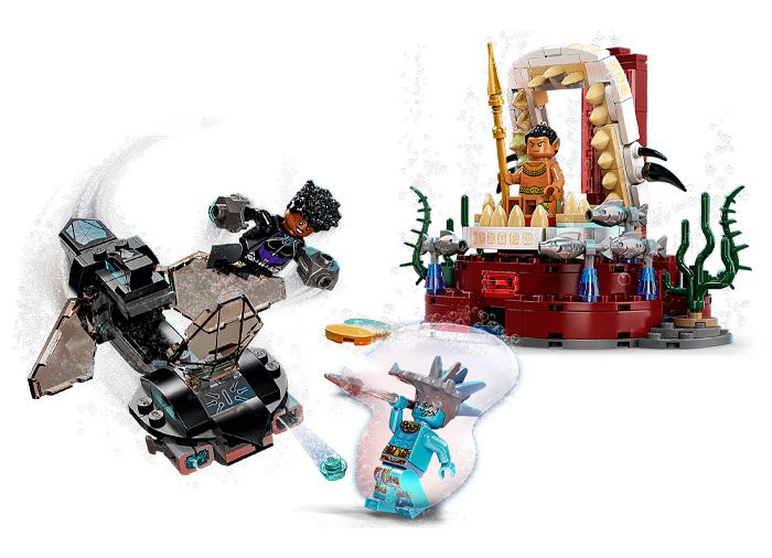 Pe tinerii super-eroi de 7 ani si mai mari ii asteapta actiune fantezista sub apa si in setul LEGO Marvel Sala tronului regelui Namor 76213 . Reproducerea atractiva si eleganta a submarinului Skirmisher din filmul Black Panther Wakanda pentru totdeauna produs de Marvel Studios are tragatoare de piroane ce pot fi actionate in timpul luptei cu ticalosul Attuma. La sfarsitul calatoriei cu submarinul ei vor descoperi Templul regelui Namor si sala tronului decorata cu alge marine. Dupa ce misiunea ia sfarsit copiii se intorc in submarin si pornesc intr-una din numeroasele aventuri subacvatice. Setul include 3 minifigurine Shuri Attuma si regele Namor impreuna cu armele si accesoriile lor cool.Specificatii