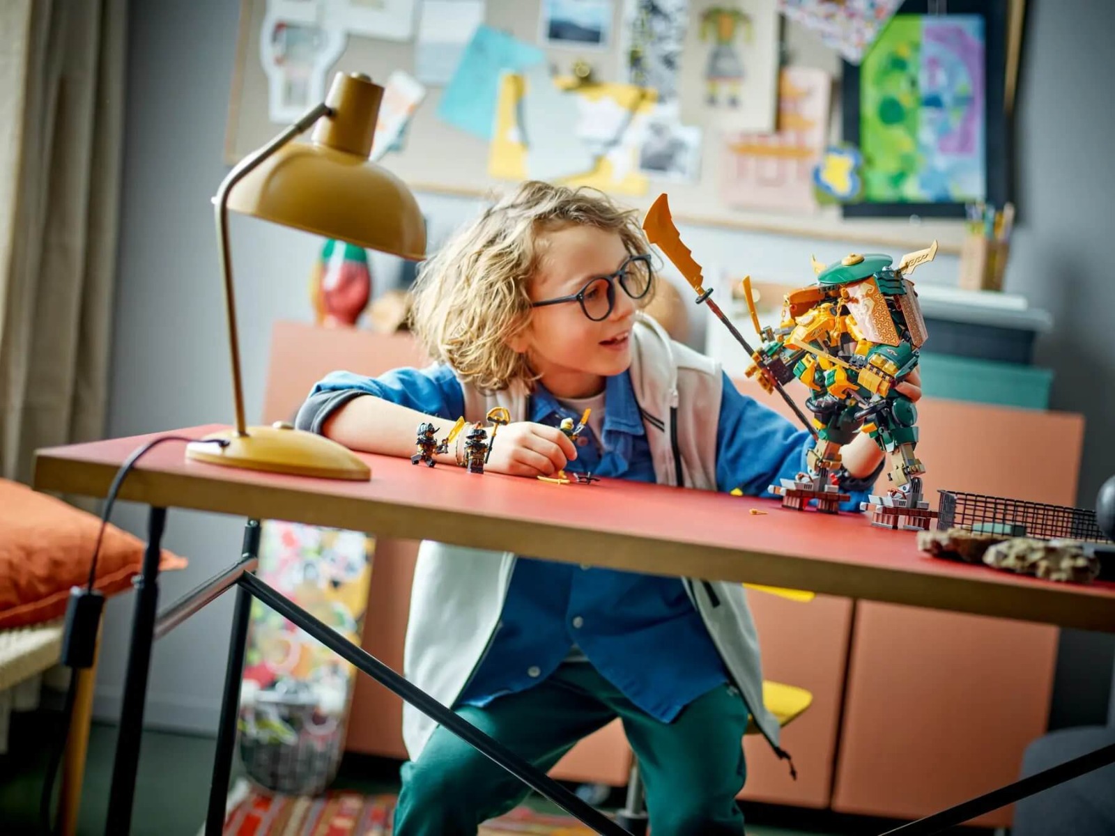 Copiii de 9 ani pot interpreta scene palpitante de antrenament si lupte din seria TV NINJAGO Dragons Rising cu setul Robotii din echipa ninja a lui Lloyd si Arin 71794 . Acest set de constructie cu totul nou contine robotii articulati ai maestrului ninja Lloyd si discipolului sau Arin care pot fi combinati pentru a crea un robot mai mare si foarte inarmat pentru joaca nelimitata. 5 minifigurine pentru lupte memorabile Acest set cu robot include 5 minifigurine. Maestrul ninja Lloyd este inarmat cu 2 sabii katana iar discipolul sau Arin are 2 sabii katana si o grapina. Cei doi se lupta cu maleficul trio format din Rapton care detine o sabie imperiala comandantul garzii imperiale care are un toiag si generalul imperial Claw inarmat cu o sabie imperiala. Acest set le ofera copiilor tot ce au nevoie pentru a interpreta pe roluri nenumarate infruntari spectaculoase. Aplicatia LEGO Builder Cu aplicatia LEGO Builder tu si copilul tau veti fi ghidati intr-o aventura de constructie usoara si intuitiva. Apropie si roteste modelele in 3D salveaza seturi si monitorizeaza-ti progresul. Set unic cu 2 roboti - Fanii ninja de 9 ani pot recrea scene de antrenament si lupta din seria TV NINJAGO Dragons Rising cu setul Robotii din echipa ninja a lui Lloyd si Arin 71794 5 minifigurine - Setul ninja include minifigurinele maestrul ninja Lloyd si discipolul sau Arin care ii infrunta pe Rapton comandantul garzii imperiale si generalul imperial Claw Combina 2 roboti articulati - In premiera copiii pot combina 2 roboti pentru a crea un robot mai mare si foarte inarmat atasand robotul lui Arin de pieptul robotului lui Lloyd Mai multa actiune ninja - Cauta seturile Motocicleta de viteza robot transformator a Sorei 71792 Nucleele energetice din Templul Dragonului 71795 si alte seturi din gama LEGO NINJAGO Constructie si joaca - Acest set din 764 de piese le ofera ocazia fanilor ninja infocati sa se bucure de o constructie captivanta inainte sa infrunte fortele raului. Poate fi daruit de ziua de nastere sau oricand Model de etalat - Cand robotii sunt combinati modelul rezultat are 28 cm in inaltime si poate fi etalat in dormitoarele copiilor in pauzele de la joaca Un nou mod de a construi - Aplicatia LEGO Builder ii ghideaza pe copii intr-o aventura de constructie intuitiva. Ei pot salva seturi isi pot monitoriza progresul pot apropia si roti modelele in 3D in timp ce le construiesc Calitate superioara - De mai bine de 6 decenii caramizile LEGO au fost fabricate pentru a garanta ca se conecteaza de fiecare data Mereu in maini sigure - Caramizile de construit LEGO respecta standarde globale de siguranta. Atentie Contraindicat copiilor mai mici de 3 ani. Jucaria produsul poate contine piese mici care se pot inghiti sau inhala existand pericolul de sufocare. Nu lasati ambalajele jucariilor produselor la indemana copiilor. Indepartati orice ambalaj al jucariei produsului inainte de a da jucaria produsul copilului. Va rugam sa supravegheati copilul in timp ce se joaca foloseste acest produs. Pastrati instructiunile si etichetele pentru referinte viitoare. Pastrati jucaria produsul departe de foc feriti jucaria produsul de temperaturi ridicate si umiditate.Specificatii