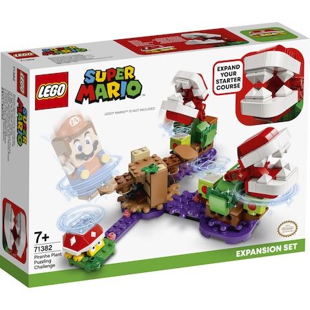 Lasa copiii sa-si extinda universul LEGO Super Mario pentru mai multa distractie cu prietenii sau pe cont propriu, cu acest Set de extindere Provocarea enigmatica a Plantei Piranha (71382). Acesta include 2 Plante Piranha si o figurina Tepusa pe care LEGO Mario (figurina nu este inclusa) trebuie sa le invinga, si un carusel ce se invarte pentru a dobori Plantele Piranha, ajungand la 3 blocuri de monede rosii ce ofera o multime de monede digitale ca recompensa. (Nota: pentru joaca interactiva ai nevoie de Setul de baza 71360.)