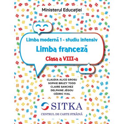 Manualul Limba moderna 1 - studiu intensiv Limba franceza Clasa a VIII-a cuprinde 8 unitati ce isi propun sa scoata in evidenta realitatea franceza sau francofona, intr-o perspectiva interculturala, abordand tematicile recomandate de Programa scolara pentru clasa a VIII-a Limba moderna 1 - studiu intensiv si integrand in temele prezentate functiile si structurile comunicative specifice competentelor de intelegere si exprimare orala si scrisa prezente in programa.