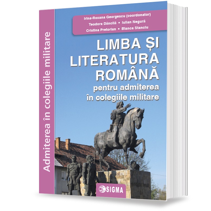 Culegerile pentru admiterea in colegiile militare sunt produse de traditie ale Editurii Sigma care s-au distins de restul produselor de pe piata si care au castigat sufragiile a generatii intregi de elevi, parinti si profesori. Prezentul auxiliar vine in sprijinul tuturor absolventilor aflati in pragul evaluarii nationale, ca modalitate de pregatire si reactualizare a cunostintelor. Lucrarea se incheie cu o prezentare a tuturor colegiilor militare din tara.
