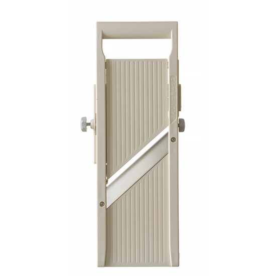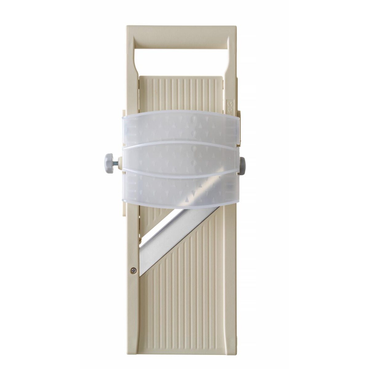 Prevazut cu: – lama plata, incorporata, care poate taia felii foarte subtiri, aproape transparente, – protectie pentru degete/suport din polipropilena, pentru protejarea degetelor si mentinerea legumelor/fructelor in timpul taierii.
