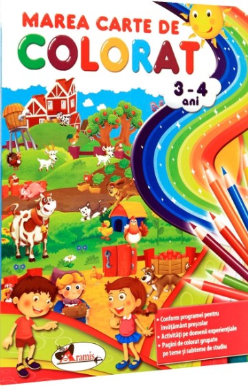 Marea Carte de Colorat pentru 3-4 ani a fost gandita tocmai sa ajute copiii sa invete sa coloreze. Ilustratiile celor 111 pagini respecta temele din programa de gradinita pentru grupa mica. Pustii se vor intalni cu jucarii indragite din universul copilariei, vor experimenta colorand si isi vor face noi prieteni dintre personajele cartii, fie acestea pasari, insecte, animale domestice ori salbatice. Copiii iubesc animalele, iubesc sa le vada, sa le atinga si sa isi imagineze propriile povesti cu veverite, pisici, albine, delfini, elefanti etc. Iata, nimic mai la indemana parintilor si a educatorilor decat sa ii calauzeasca pe cei mici in lumea fascinanta a culorilor, alaturi de Marea Carte de Colorat.