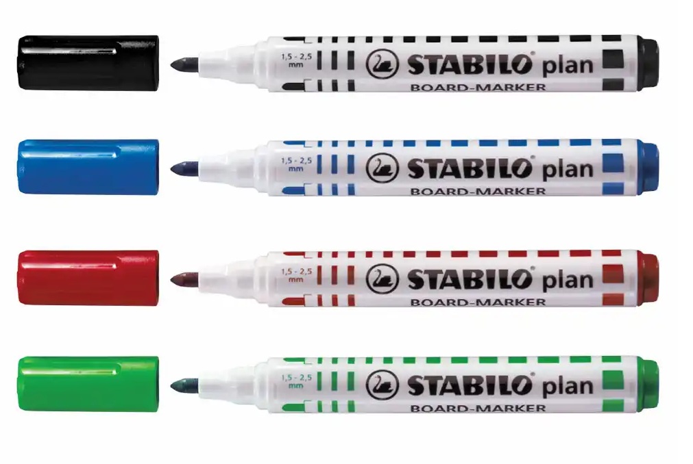 Marker pentru tabla Stabilo Plan 64, varf rotund, 2.5-3.5mm, 4 bucati/set