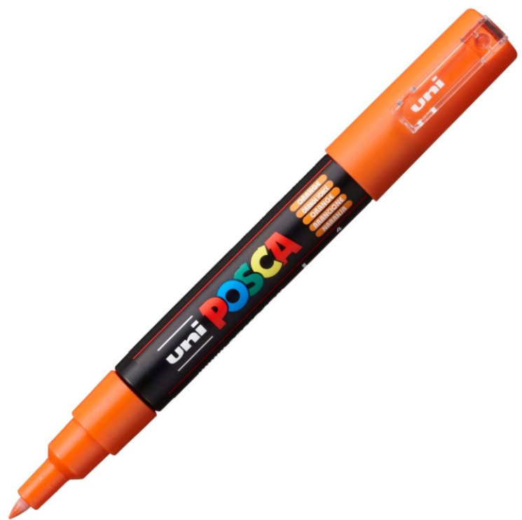 Marker/carioca pe baza de apa care poate fi folosit pe orice tip de suprafata cum ar fi textile lemn hartie plastic ceramica piele metal sticla etc. Markerele Posca sunt permanente pe suprafete poroase si nonpermanente pe suprafete lucioase. Vopseaua continuta in markere are putere mare de acoperire efect opac la baza si prin diluare cu apa se poate obtine efect de acuarela. Culorile se pot combina cat sunt inca umede. Markerul PC-1M Ideal pentru creatiile in format mic. Este preferat atat de copii cat si de adulti incepatori sau experti care il folosesc pentru a colora cu precizie.