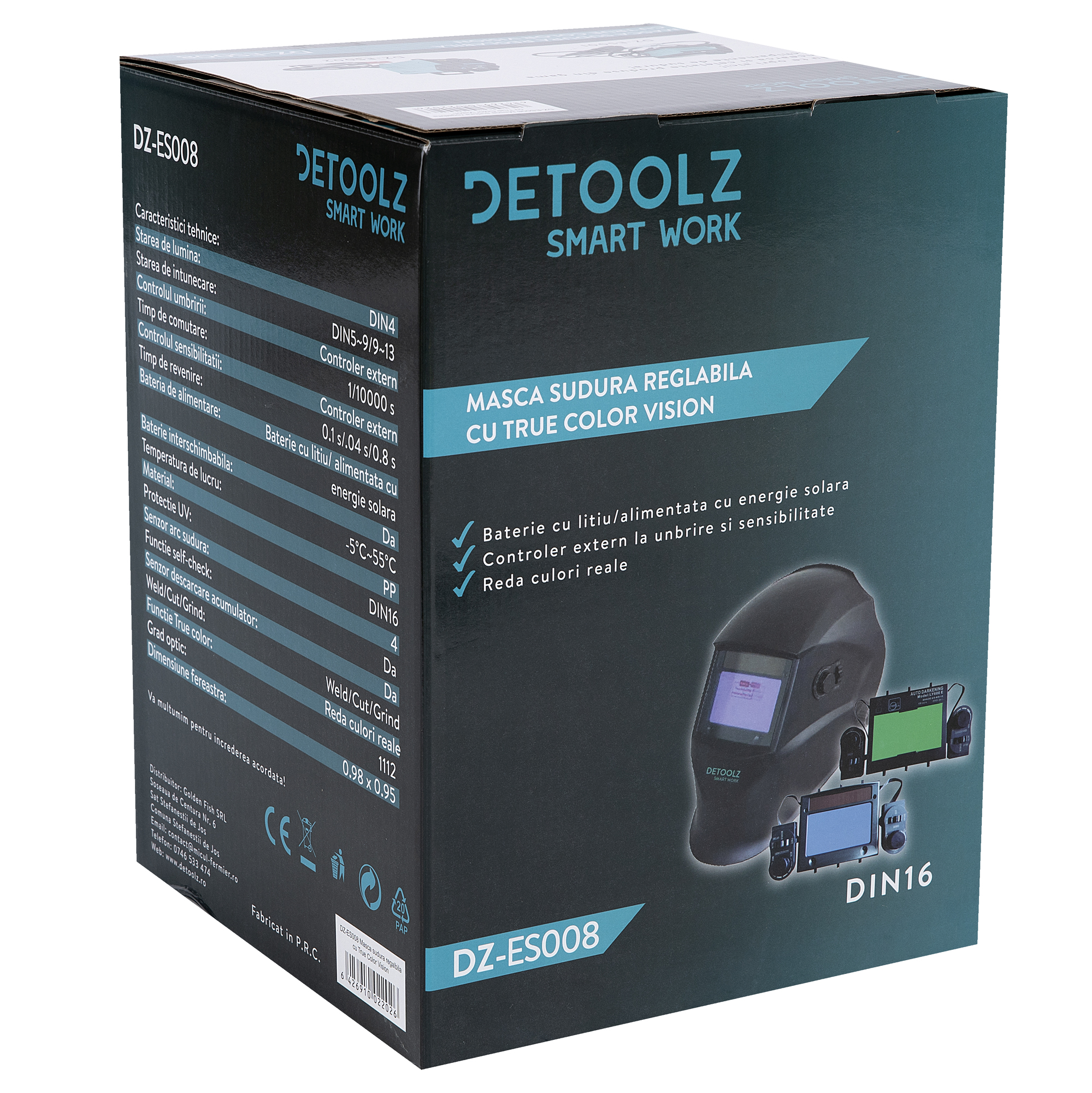 Masca de sudura regalbila cu True Color Vision DZ-ES008 reglabila este conceputa pentru a proteja ochii si fata de scantei stropi de metal topit si radiatii nocive in conditii normale de sudura. Masca de sudura regalbila cu True Color Vision DZ-ES008 are urmatoarele caracteristici Nivel inalt de claritate optica ce permite o utilizare indelungata si confortabila Lentilele ce ofera o buna rezistenta la impact si zgariere pentru o durabilitate sporita Cu o greutate foarte redusa masca prezinta un design modern ce ofera un grad de acoperire ridicat si un camp vizual excelent. Protectie impotriva radiatiilor UV. Construita din materiale de fabricatie de cea mai buna calitate usoare si rezistente pentru o durata de viata extinsa Produs cu raport pret calitate excelent. Continut colet masca de sudura regalbila cu True Color Vision DZ-ES008 Masca de sudura Manual de instructiuni Cutie de transport.Specificatii