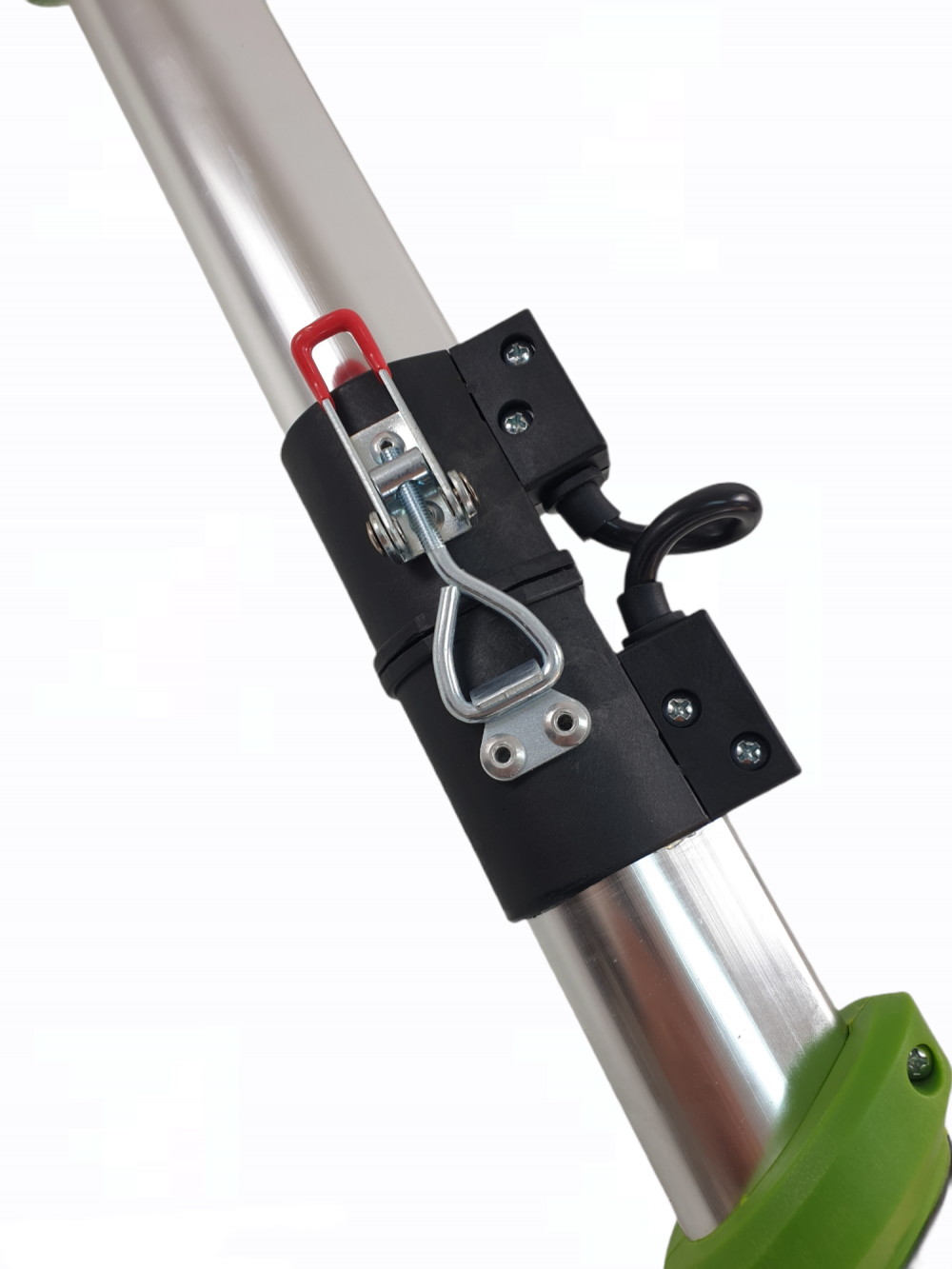 - tija telecopica si pliabila cu extindere de la 140 cm la 170 cm ( s-a masurat inaltime din talpa pana la conectiunea furtunului). Tija telescopica se prelungeste cu inca 30 cm fata de valoarea nominala si poate fi blocata cu ajutorul surubului prevazut. Pentru a facilita transportul, masina de slefuit pereti (girafa) poate fi demontata la jumatate din lungimea ei de lucru.
