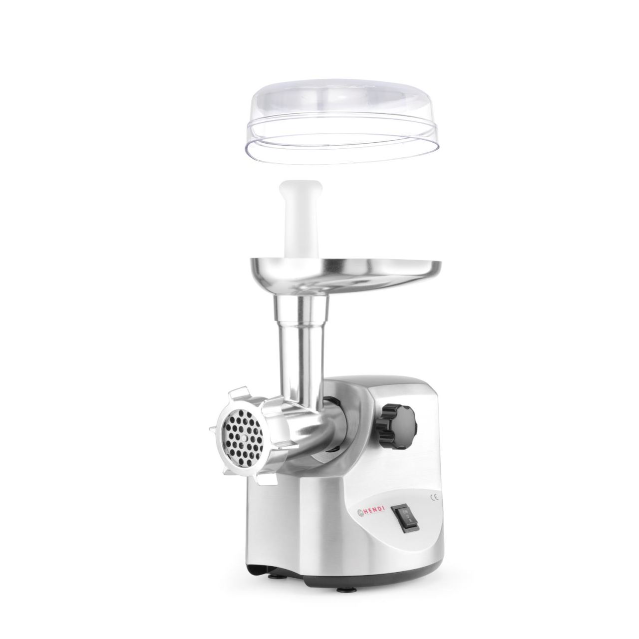 Masina de tocat carne, 2 discuri taiere incluse 4 si 7 mm, 3 accesorii umplere carnati 12, 15, 20 mm, Hendi 198, corp aluminiu, palnie fonta, 400W