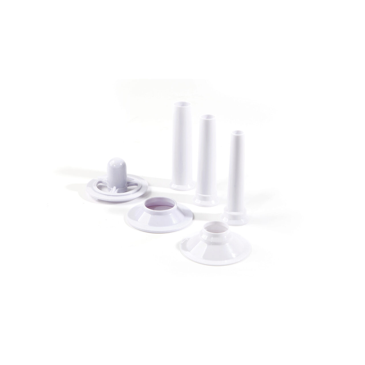 Melc din aluminiu, cutit din otel inoxidabil 2 discuri taiere cu diametru 65,8 mm, incluse: 4 mm si 7 mm diametrul orificiilor 3 tuburi umplere carnati: 12, 15 si 20 mm Accesoriu biftec tartar