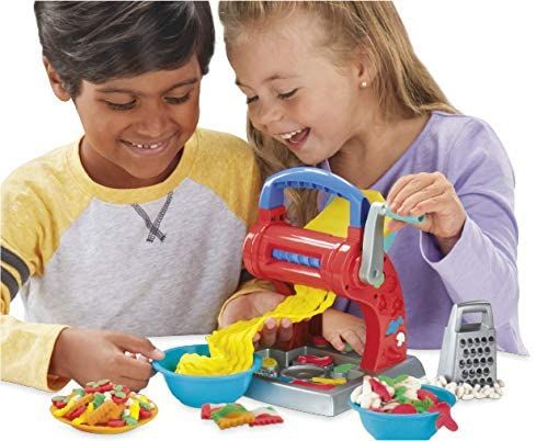 Inspirata de masinile clasice de paste cu manivela, aceasta jucarie Play-Doh pentru fabricarea DE taitei este un instrument fantastic, deoarece copiii isi pot imagina crearea propriilor lor feluri de mancare de paste Play-Doh. Utilizati cele 2 accesorii ale masinii pentru a schimba stilul si grosimea taiteilor. Setul de joc contine o multime de forme pentru a crea cele mai ciudate forme mixte si discuri late nebune pentru a produce forme de legume si oua imaginare. Imprimanta si matrita pot crea alte forme de paste false, cum ar fi farfalle si ravioli care par reale. Condimenteaza-l cu razatoarea de branza Play-Doh! Cu 5 borcane de compus Play-Doh non-toxic, aveti o multime de culori pentru a incepe. Aceasta jucarie pentru a crea mancare falsa este un cadou ideal pentru copiii de la 3 ani, pentru a se juca pentru a crea alimente false oricand. Consultati cele 2 file creative pentru cateva idei creative simple!
