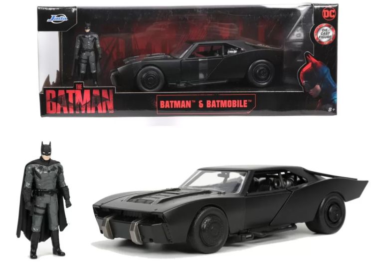 Masinuta din metal Batmobile model 2022 cu usi mobile si figurina din metal Batman lungime 19 cm scara 1 24. Batmobilul 2022 la scara 1 24 este un model spectaculos Batmobilul din noul film ii va speria chiar si pe cei mai rai criminali. si desigur exista o silueta Batman gata sa se joace cu tine Modelul Knight of the Road turnat sub presiune prezinta anvelope care ruleaza si detalii negre atragatoare. Alaturati-va echipei lui Batman si pastrati impreuna strazile din Gotham City in sigurantaSpecificatii
