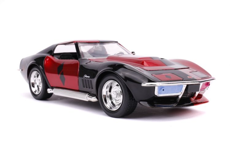 Masinuta din metal Chevy Corvette Stingray, cu usi, capota si portbagaj ce se pot deschide. Setul include si o figurina din metal Harley Quinn. Scara 1: 24. Caroseria este realizata folosind tehnologia Die-Cast (turnare prin injectie). Corpul are un finisaj rosu si negru cu un preaplin metalic. Corp detaliat. Sticla transparenta si faruri. Oglinzi retrovizoare.